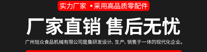 廣州旭眾食品機械有限公司是一家集科研開發(fā),生產設計,營銷服務為一體的現(xiàn)代化生產企業(yè)?,F(xiàn)代化生產車間,精湛制造技術,所產機械歷經市場重重考驗,不斷贏得海內外客戶的贊譽。