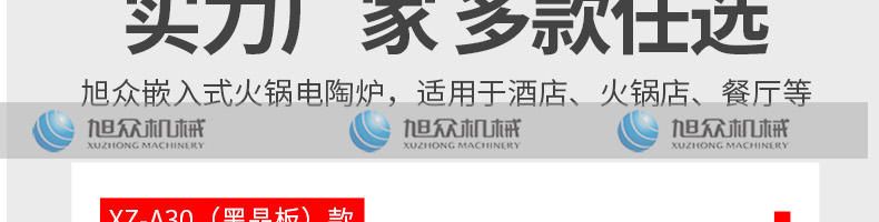 嵌入式電陶爐XZ-A30,實力廠家·采用高品質零配件。廠家直銷,售后無憂。廣州旭眾食品機械有限公司是集研發(fā)設計、生產銷售于一體的現(xiàn)代化企業(yè)。一站式購機,無中間差價。
