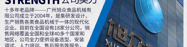 廣州旭眾食品機(jī)械有限公司是一家集科研開發(fā),生產(chǎn)設(shè)計,營銷服務(wù)為一體的現(xiàn)代化生產(chǎn)企業(yè)?,F(xiàn)代化生產(chǎn)車間,精湛制造技術(shù),所產(chǎn)機(jī)械歷經(jīng)市場重重考驗,不斷贏得海內(nèi)外客戶的贊譽(yù)。