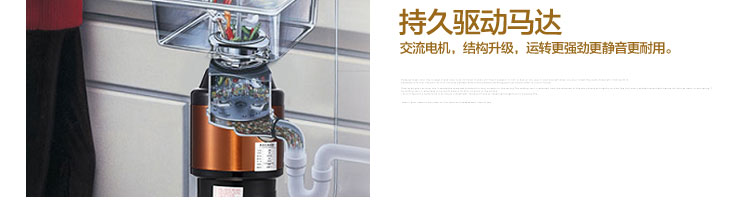 DCLQ38-廚房垃圾處理器,該機(jī)擁有獨(dú)特的粉碎功能,使所有垃圾研磨吸毒真正低于3毫米,用戶不用為管道堵塞而煩惱,粉碎后粗、細(xì)兩種垃圾通過(guò)濾孔自動(dòng)分離,成漿狀的細(xì)垃圾隨水流流入管道,粗的垃圾會(huì)稍停留在研磨倉(cāng)繼續(xù)粉碎,形成粉末狀后,再隨水流流入管道,客戶可以放心使用。