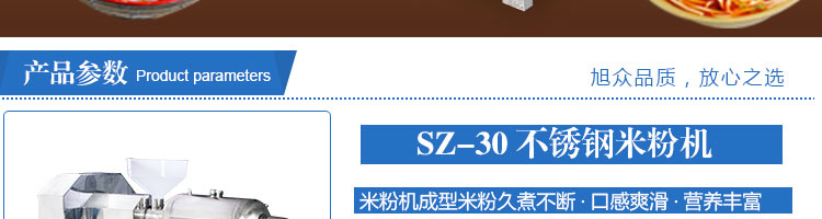 SZ-30不銹鋼米粉機(jī),可生產(chǎn)米粉、米線、桂林米粉、過橋米線、年糕、糍粑等產(chǎn)品。各種形狀都可生產(chǎn)(圓、扁),加工食品外表光滑,厚薄、寬窄、粗細(xì)均勻可調(diào),筋軟適度,有彈性,口感柔軟、味道純正。