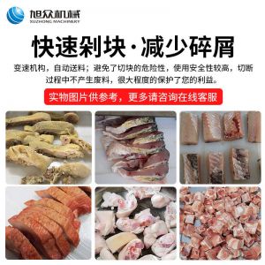 XZW-130禽肉類剁塊機(jī),手工剁肉的煩惱人工切骨頭費(fèi)時(shí)費(fèi)力,效率低并且人工成本高,而且也是一個(gè)危險(xiǎn)程度高的活,尤其是切大骨頭的時(shí)候,一不小心就會(huì)傷到手手工剁肉費(fèi)時(shí)費(fèi)力成本高。旭眾禽肉類剁塊機(jī)幫你解決手工煩惱每小時(shí)可剁切600公斤。