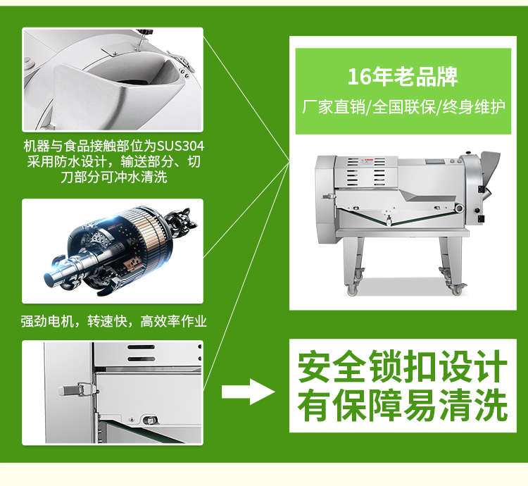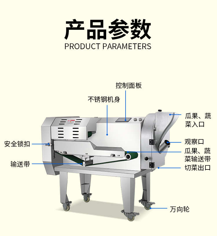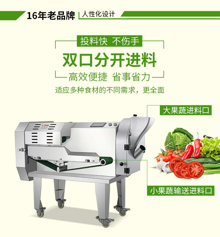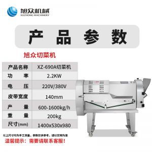 XZ-690A型多功能切菜機,工作效率高,幫你省人工費。1小時可切600kg-1600kg/h,1臺機器等于多名廚師同時為您工作。一機多用,可切瓜果、蔬菜、藥材,刀片可進行更換,設計周到,結構合理,簡單輕松應對。