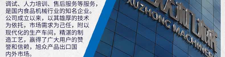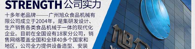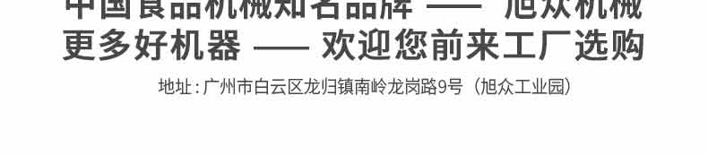廣州旭眾食品機械有限公司是一家集科研開發(fā),生產(chǎn)設計,營銷服務為一體的現(xiàn)代化生產(chǎn)企業(yè)。現(xiàn)代化生產(chǎn)車間,精湛制造技術,所產(chǎn)機械歷經(jīng)市場重重考驗,不斷贏得海內(nèi)外客戶的贊譽。